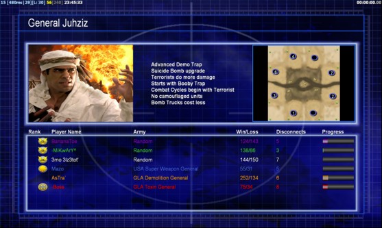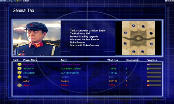 | Display Name | Side | Color | Team | Map Starting Position | Buildings Built | Buildings Destroyed | Buildings Lost | Units Built | Units Destroyed | Units Lost | Total Money Earned | Outcome |