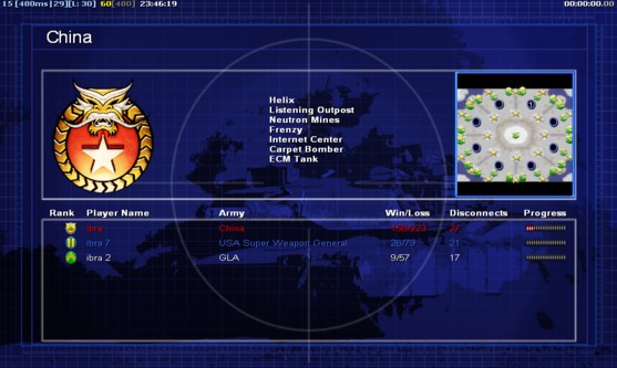 | Display Name | Side | Color | Team | Map Starting Position | Buildings Built | Buildings Destroyed | Buildings Lost | Units Built | Units Destroyed | Units Lost | Total Money Earned | Outcome |